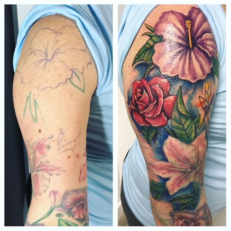 Skin Design Tattoos talented and innovative tattoo artists are proud to be able to work with existing body art and come up with a unique design and plan to suit your own needs.
